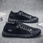 These stylish black sport casual shoes combine minimalist design with practical functionality, perfect for everyday wear and light activity. The upper features high-quality breathable knit fabric, ensuring a lightweight and comfortable fit while keeping your feet cool and dry. Enhanced with a reinforced protective toe and textured side panel design, these shoes offer both style and functionality. The durable rubber sole provides excellent anti-slip performance and superior traction, delivering a steady stride. With a flexible and lightweight structure, these sneakers guarantee all-day comfort.
