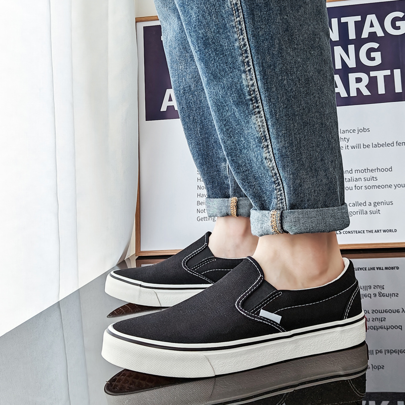 With its minimalist design, comfortable fit, and reliable durability, these black slip-on canvas shoes are perfect for creating a stylish and effortless look. Whether for daily wear or casual outings, these shoes will give you confidence and ease in every step.