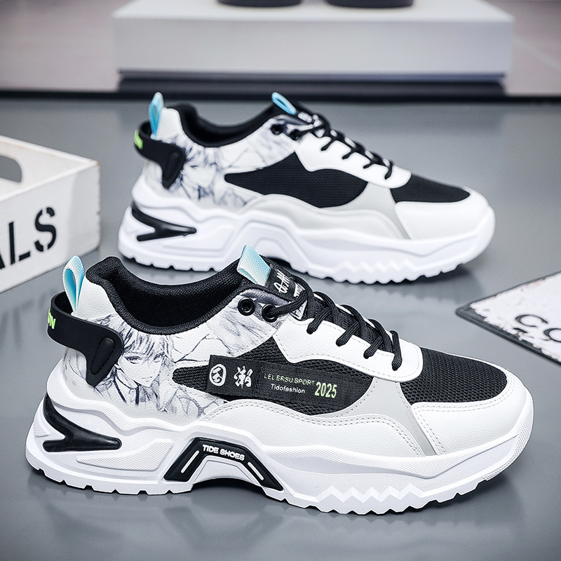 These trendy sports shoes combine style and functionality, designed for consumers who seek individuality and comfort. The upper is made of breathable mesh material, ensuring lightweight comfort, paired with bold graffiti patterns that showcase a unique streetwear style. The thick, anti-slip outsole offers excellent traction and stability, allowing you to move freely during daily wear or outdoor activities. The stylish color-blocking design and intricate detailing add a striking visual impact, making this a must-have fashion item for 2025. Whether for casual outings or fitness activities, these shoes meet your versatile needs and keep you effortlessly ahead of the fashion curve.