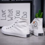 This pair of classic high-top white canvas shoes features a minimalist design, perfectly complementing various styles, making it an essential item for your daily wardrobe. The upper is made of premium canvas material, lightweight and breathable, ensuring long-lasting comfort. The reinforced sole design is anti-slip and durable, suitable for multiple occasions, including daily commutes, casual gatherings, or outdoor activities. Whether paired with jeans, shorts, or skirts, these white high-top shoes effortlessly enhance your overall look. Simple yet stylish, combining fashion with practicality, they are an ideal choice for everyone’s shoe collection!