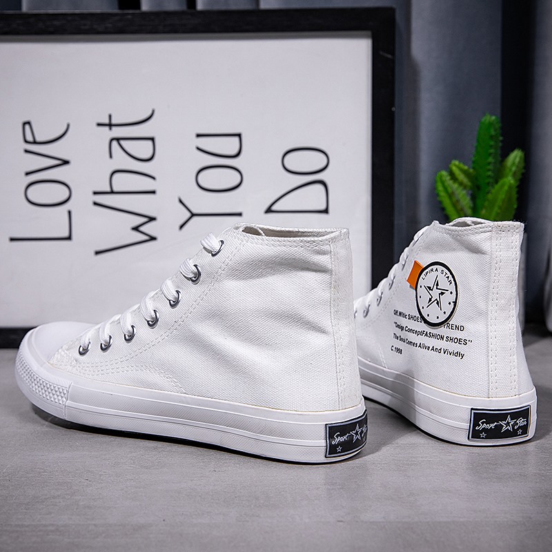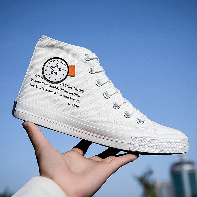 This pair of classic high-top white canvas shoes features a minimalist design, perfectly complementing various styles, making it an essential item for your daily wardrobe. The upper is made of premium canvas material, lightweight and breathable, ensuring long-lasting comfort. The reinforced sole design is anti-slip and durable, suitable for multiple occasions, including daily commutes, casual gatherings, or outdoor activities. Whether paired with jeans, shorts, or skirts, these white high-top shoes effortlessly enhance your overall look. Simple yet stylish, combining fashion with practicality, they are an ideal choice for everyone’s shoe collection!