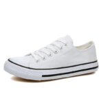 These classic white low-top canvas shoes are crafted from premium canvas material, offering lightweight and breathable comfort for all-day wear. The durable rubber sole is designed for excellent grip and wear resistance, making them suitable for various occasions. With a simple and versatile design, they pair effortlessly with jeans, shorts, or casual dresses, showcasing your sense of style. The clean silhouette and comfortable performance make these shoes the perfect choice for daily casual wear, travel, or light activities. Let these classic canvas shoes become your go-to wardrobe staple, adding a touch of fashion and confidence wherever you go!