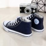 “These classic blue high-top canvas sneakers are the ultimate blend of timeless style and everyday comfort. Featuring a durable canvas upper, breathable design, and a sturdy rubber sole, they are perfect for casual outings or completing your streetwear look. With their unisex appeal and versatile design, these sneakers are a wardrobe essential, offering both style and functionality for any season.”