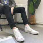 These classic white high-top canvas shoes feature a simple and retro design, making them a versatile and comfortable choice for daily wear. The upper is made of high-quality canvas material, which is breathable and durable for all-day comfort. The outsole is crafted from non-slip rubber, providing excellent grip and safety. The timeless white body with red and black accents adds a touch of style, making these shoes perfect for casual outings or everyday campus life. Designed to suit both men and women, they are a must-have addition to your wardrobe, ensuring confidence and comfort wherever you go.