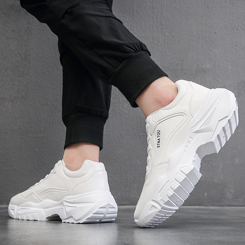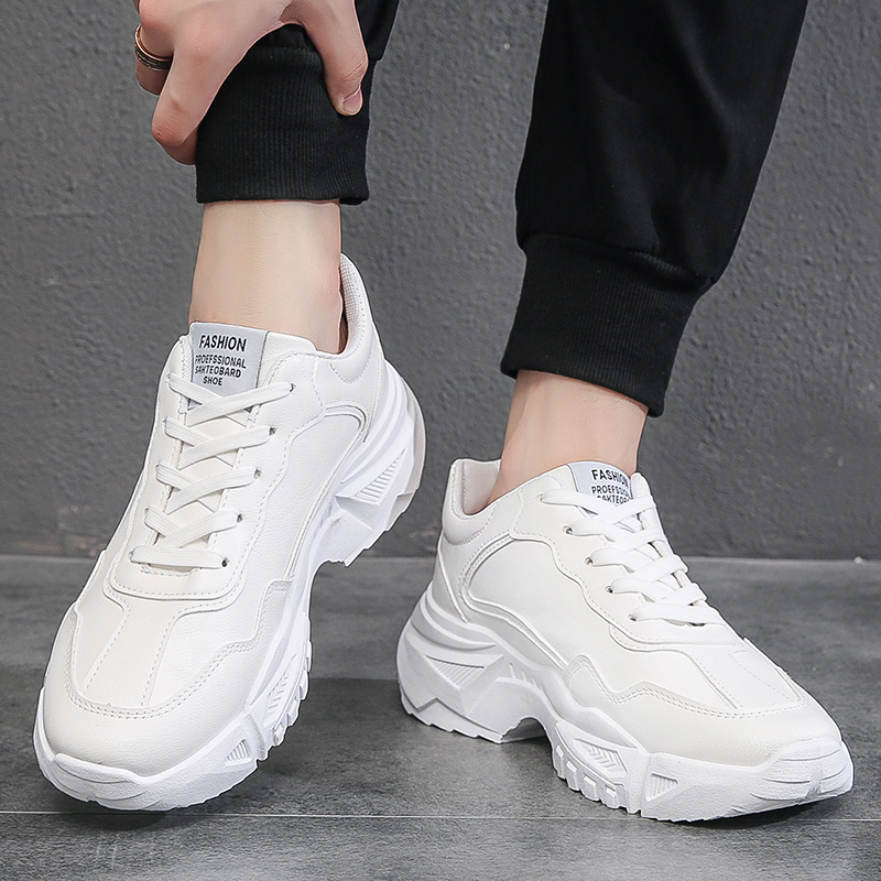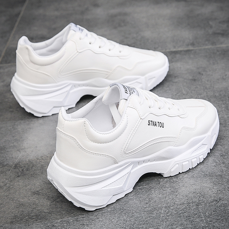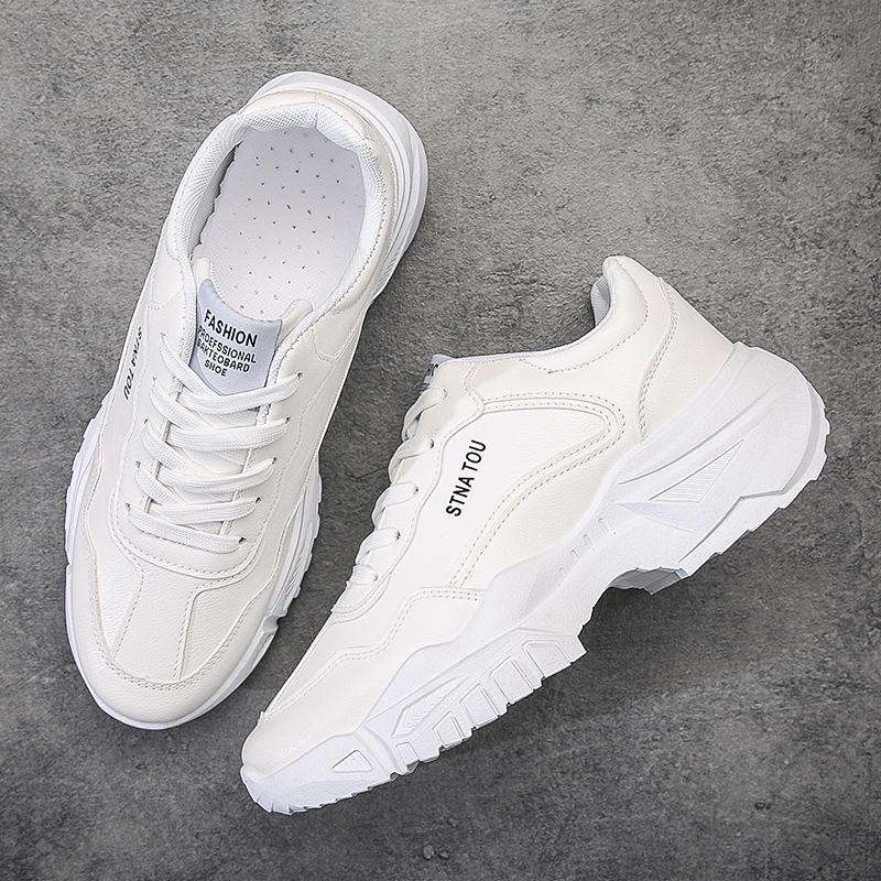 These all-white sneakers combine simplicity and style, featuring a chunky sole that adds a trendy touch while providing excellent support. Perfect for everyday wear or casual activities, the upper is made of high-quality synthetic leather that is durable, easy to clean, and breathable for all-day comfort. The sleek, minimalist design makes it an ideal choice for those who value both fashion and functionality.