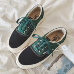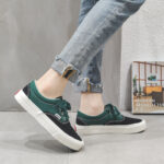 These green-and-black color-block canvas shoes perfectly combine style and classic appeal, delivering a modern casual look. Made from high-quality breathable canvas material, they ensure long-lasting comfort and durability for all-day wear. The vibrant green and black contrast design, paired with fine white stitching, adds a touch of unique fashion. The outsole is crafted from anti-slip, wear-resistant rubber, providing excellent traction and stability, allowing you to walk with ease in any setting. Whether for daily commuting, casual outings, or travel, these canvas shoes are the perfect blend of versatility and style.