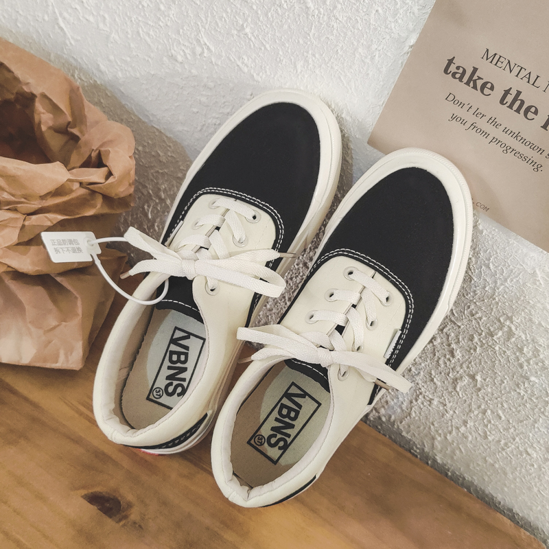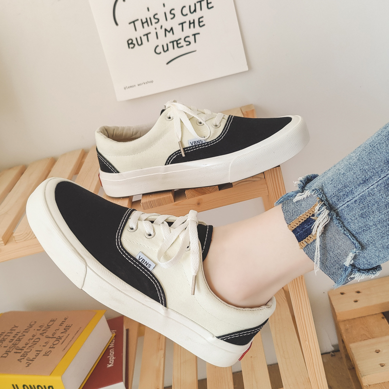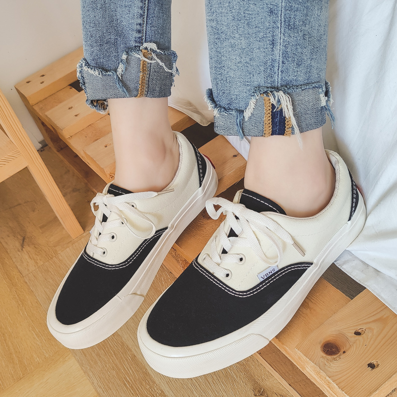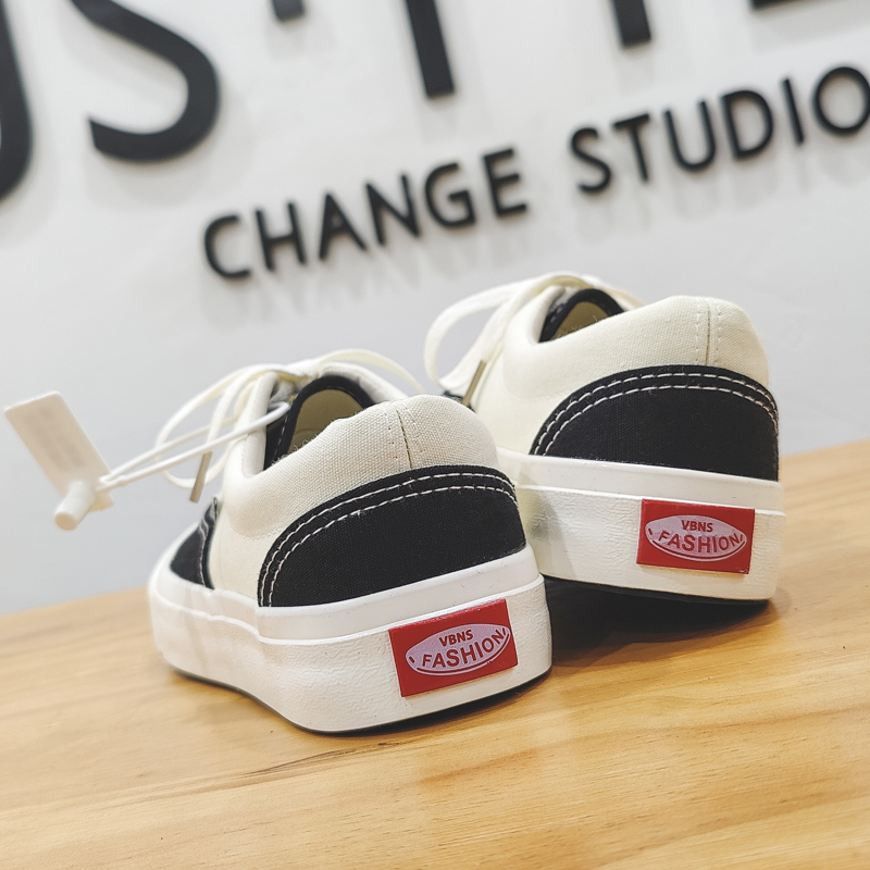 Fashion black and white color scheme walking style vulcanized shoes low top canvas trend shoes-vt59