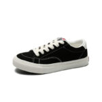 These classic black and white low-top sneakers feature a black suede upper and a white rubber sole, delivering a timeless and versatile design. The fine stitching and smooth lines add a touch of premium quality. The soft, breathable upper ensures comfort for extended wear, while the durable, anti-slip rubber sole provides excellent grip, making it perfect for daily commutes, casual outings, and various occasions.