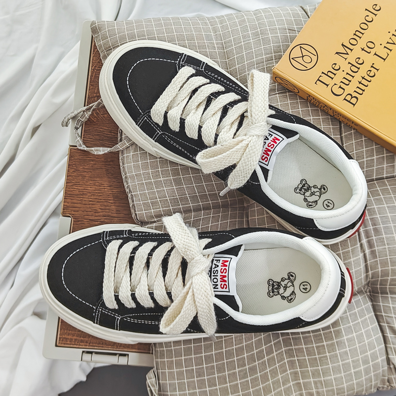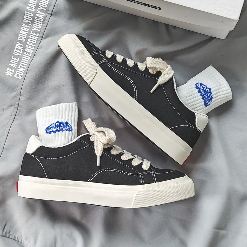 Fashion black and white color scheme walking style vulcanized shoes low top canvas trend shoes-vt59