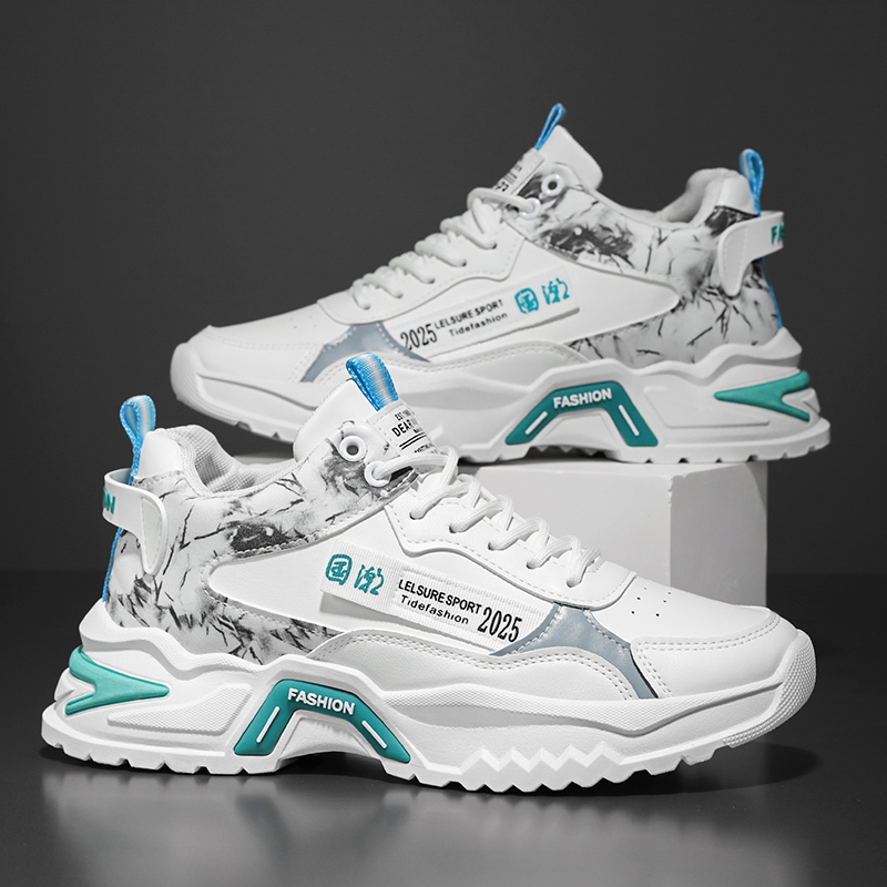 trendy sports sneaker blends street style with modern design, featuring high-quality leather and breathable mesh panels for durability and comfort. The unique black, white, and gray color-block design, complemented by bold trend-inspired logos and detailed accents, makes it stand out from the crowd. The thick, non-slip outsole provides excellent support and stability, perfect for both everyday wear and athletic activities. Whether you’re a fashion enthusiast or someone who prioritizes comfort, this sneaker is a must-have to help you effortlessly embrace urban style. Get yours now and step into a new chapter of fashion!