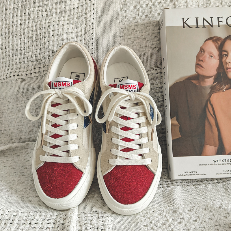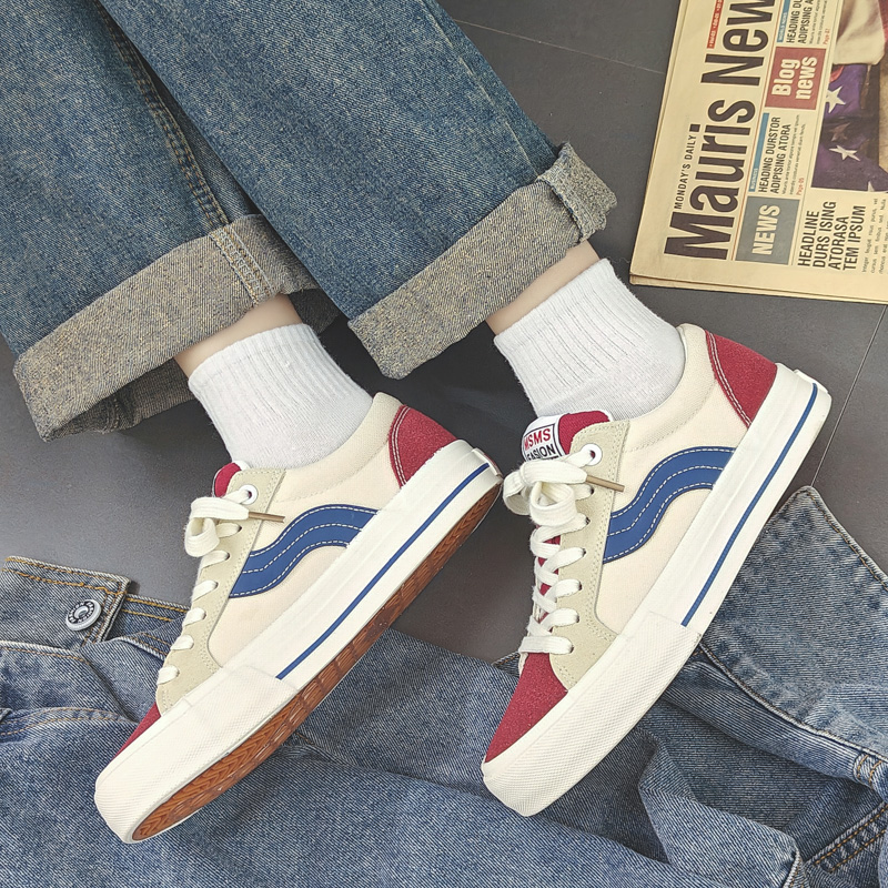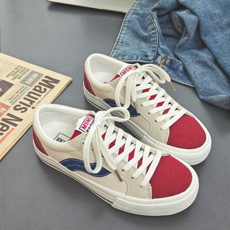 These red, white, and blue casual sneakers perfectly blend vintage style with modern design, delivering a unique and fashionable look. The upper is crafted from high-quality canvas material with suede accents on the red toe cap and heel, enhancing durability and texture. The signature blue wave stripe adds a dynamic and stylish touch, while the white midsole with blue detailing highlights the vibrant and refined aesthetic. A cushioned insole and soft lining provide exceptional comfort for all-day wear, and the anti-slip, wear-resistant rubber outsole ensures superior stability and traction. Whether for streetwear, daily commuting, or casual outings, these sneakers bring energy and style to every step.