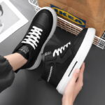 Breathable Casual Sport Mens Black Shoe Plus Size Show Height increasing Sneakers-dc2205