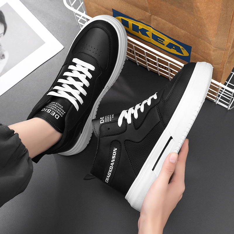 These black and white high-top sneakers combine fashion and functionality, making them the perfect fit for everyday wear and trendy street style. The upper is crafted from high-quality synthetic leather, presenting a sleek and premium texture. Paired with a durable white thick sole, these shoes provide excellent grip and support for all-day comfort. The classic lace-up design ensures a secure fit, while the unique brand print on the side adds a touch of style. Whether for casual outings, campus commutes, or trendy streetwear looks, these high-top sneakers are your ideal choice!