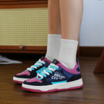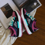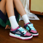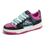 This trendy and stylish sneaker features a unique color-blocking design, with violet and black as the main tones accented by striking blue details, creating a distinctive and eye-catching look. The upper is made of high-quality synthetic materials, offering both breathability and durability to ensure all-day comfort. The thickened sole provides excellent cushioning and enhanced support, making it perfect for everyday wear or light exercise. The side of the shoe features personalized logo designs and textured details, adding a touch of street fashion. Whether paired with casual or athletic wear, these sneakers will make you stand out in the crowd!