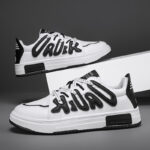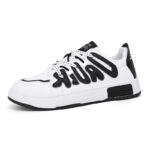These stylish and trendy casual sneakers feature a classic black and white color scheme with unique 3D letter embellishments, showcasing personality and street fashion. Made from high-quality synthetic leather, the upper is breathable and lightweight, ensuring all-day comfort. The thickened anti-slip rubber outsole offers excellent durability and grip, making it perfect for both daily wear and active outings. Combining fashion and functionality, these sneakers are a must-have versatile piece for urban trendsetters. Step into them and effortlessly own every stride with your unique style!