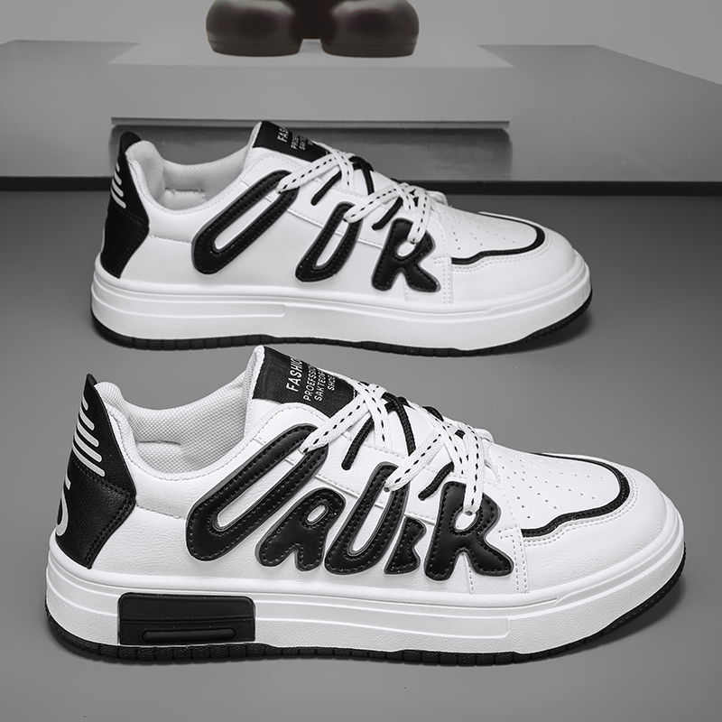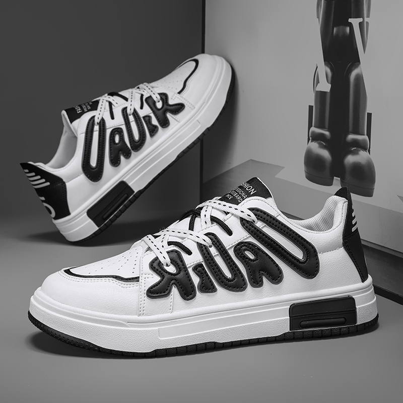 These stylish and trendy casual sneakers feature a classic black and white color scheme with unique 3D letter embellishments, showcasing personality and street fashion. Made from high-quality synthetic leather, the upper is breathable and lightweight, ensuring all-day comfort. The thickened anti-slip rubber outsole offers excellent durability and grip, making it perfect for both daily wear and active outings. Combining fashion and functionality, these sneakers are a must-have versatile piece for urban trendsetters. Step into them and effortlessly own every stride with your unique style!
