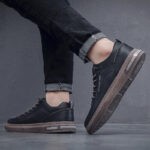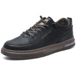 These black genuine leather casual shoes seamlessly blend classic design with modern craftsmanship, exuding an elegant and sophisticated urban style. The upper is made from high-quality full-grain leather, offering a soft touch, fine texture, and long-lasting durability. The detailed stitching adds a premium feel, while the vintage brown rubber sole provides excellent grip, wear resistance, and lightweight stability. The soft, breathable lining and cushioned insole ensure all-day comfort, even during extended wear.