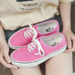 These cherry blossom pink canvas shoes combine sweet tones, comfort, and versatility to become a must-have addition to your wardrobe. Whether for daily wear or special occasions, they effortlessly bring out your youthful and stylish charm.
