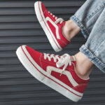 These red and white sneakers combine vibrant design with breathable comfort and durability, making them the perfect choice to express your active and stylish personality.