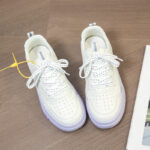 Order these trendy white and purple chunky sneakers now to enjoy the perfect combination of comfort and style!