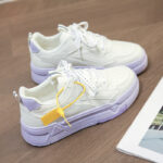 These white and purple chunky sneakers feature a clean white base accented with soft purple details on the sole and heel, creating a stylish and unique look. The upper is crafted from premium synthetic leather, providing a soft touch, breathability, and all-day comfort. The thick cushioned sole offers excellent shock absorption and stability, while the anti-slip design ensures secure steps. Perfect for commuting, casual outings, or trendy streetwear, these sneakers effortlessly enhance your fashion-forward style.