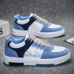 These stylish casual sneakers feature a striking blue and white color combination, blending modern trends with ultimate comfort. The upper is crafted from premium suede and leather materials, complemented by intricate textured details and unique printed patterns, showcasing your individuality. Lightweight and breathable, these shoes are perfect for street style or everyday wear, making you stand out effortlessly.